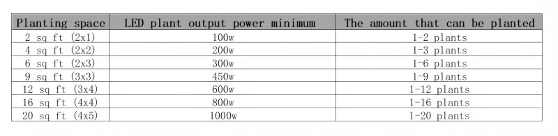 Όταν καλλιεργούν φυτά, υπάρχουν τουλάχιστον 50 watts LED φυτικού φωτός ανά τετραγωνικό πόδι αναπτυσσόμενου χώρου.